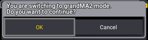 - Select Switch to grandMA2 and press the rotary knob to confirm: