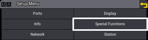 - Turn the rotary knob to select Special Functions and press the rotary knob to confirm:
