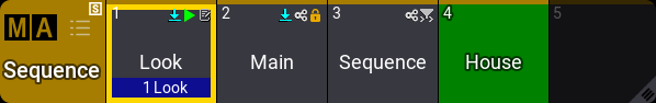 Two sequences can be connected and share the cue data. If a sequence shares data with another sequence, then it has a small icon (