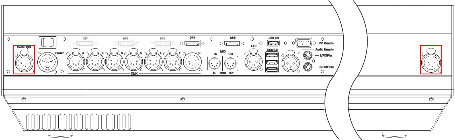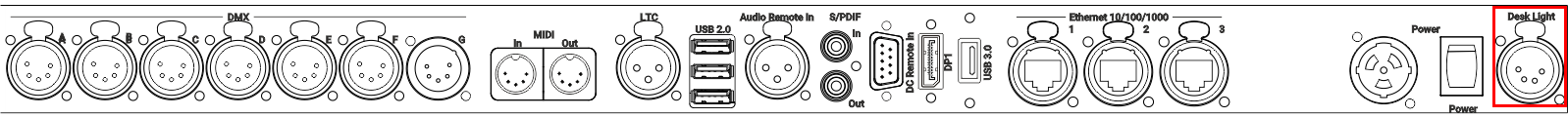 - Connect the 4 pin XLR connector to the desk light connectors on the rear panel.