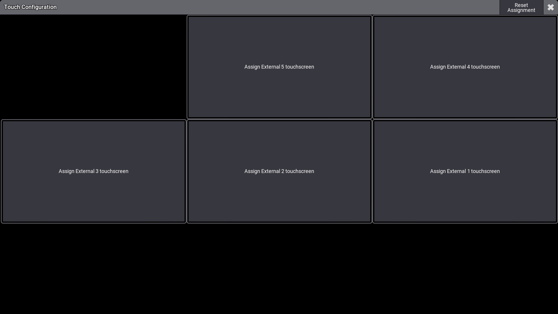 - To assign a touch input to a monitor, tap a monitor button in the touch configuration overlay. For example, Assign External 1 touchscreen.