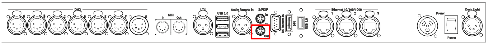 The following grandMA3 products have a S/PDIF (Sony/Philips Digital Interface) connectors on the rear panel to output sound.