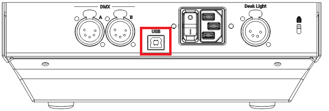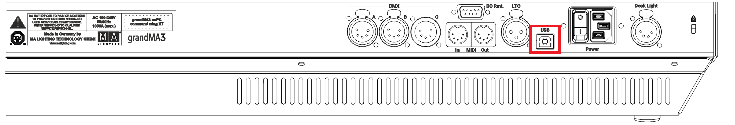 To connect a grandMA3 onPC device with the computer or laptop, use the USB connector (type B):