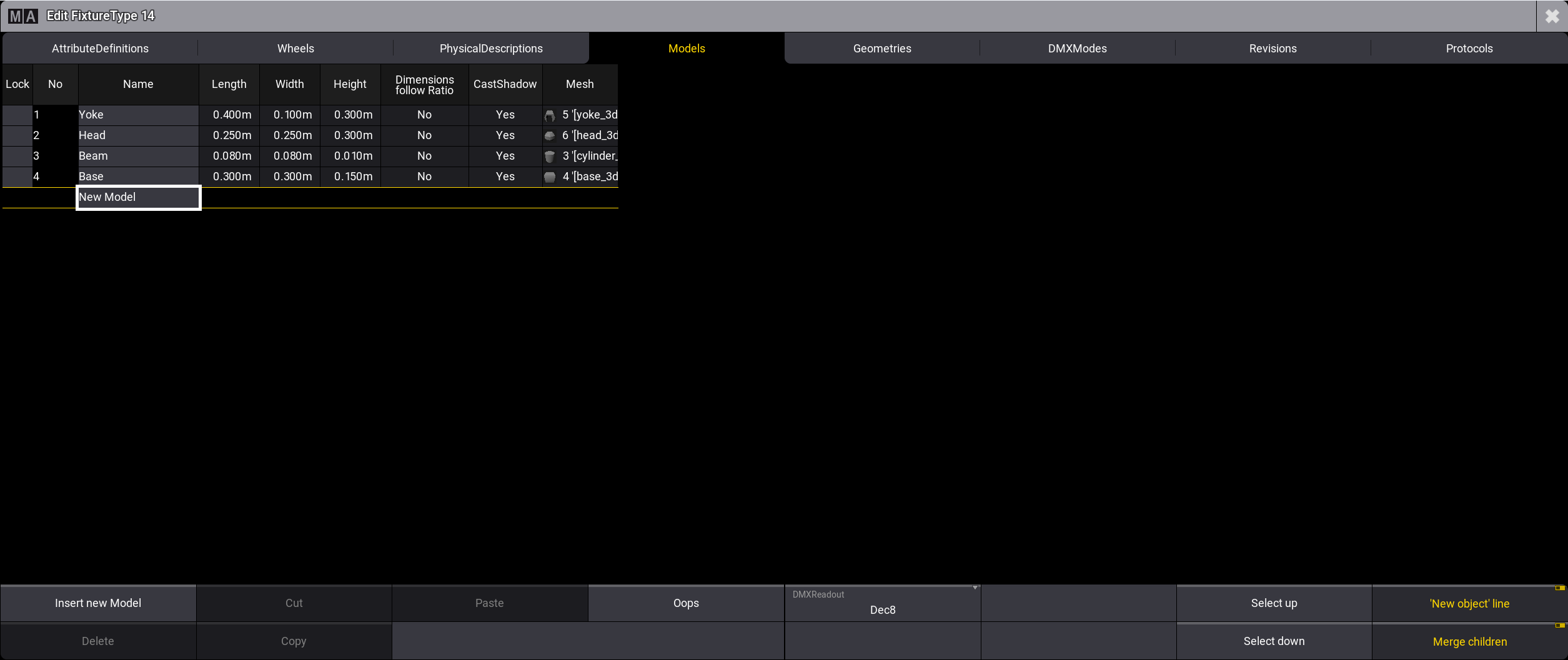 After they have been imported, meshes must be linked to a model of a fixture type.