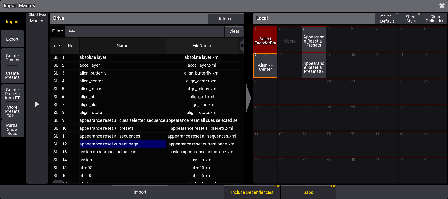 - Tap Import at the bottom of the editor. This opens the macro library.