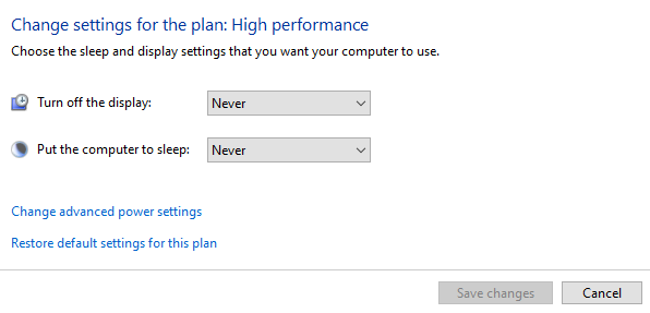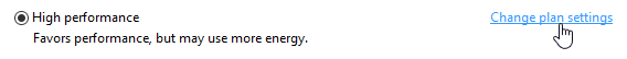 - Click Change plan settings next to High performance