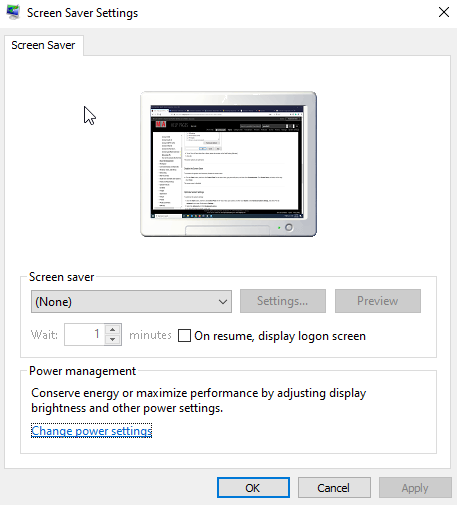 - In the Screen saver select (None).