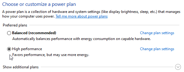 - Under Preferred plans, click High performance.