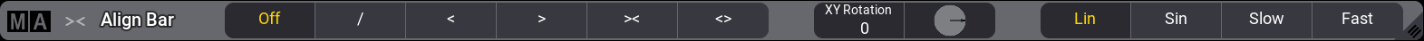 The Align Bar Window gives fast access to all the align functions. It has both the align modes and the align transitions.