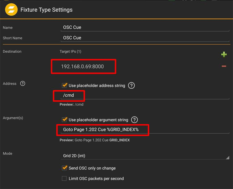 - Enter the exact string address the console expects. In the example, it is the fader of executor 201 on page 1 of the grandMA3 software.