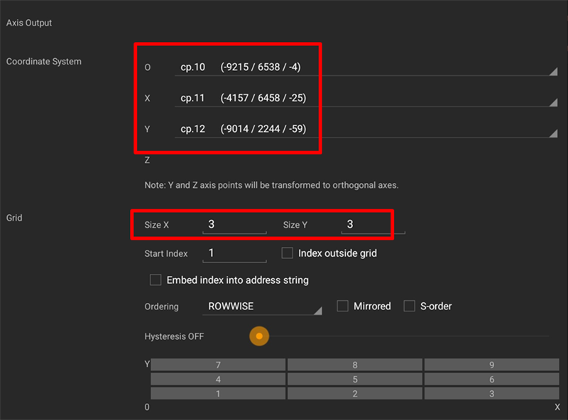 - Define the Axis Output, X only.