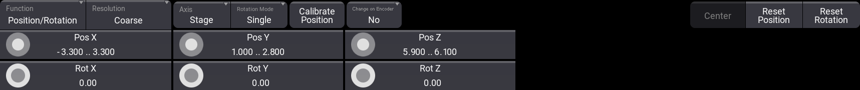 The values on the encoders show the relevant values depending on the selected fixtures. Turning the encoders changes the values and, thus, the position or rotation of the selected fixtures.