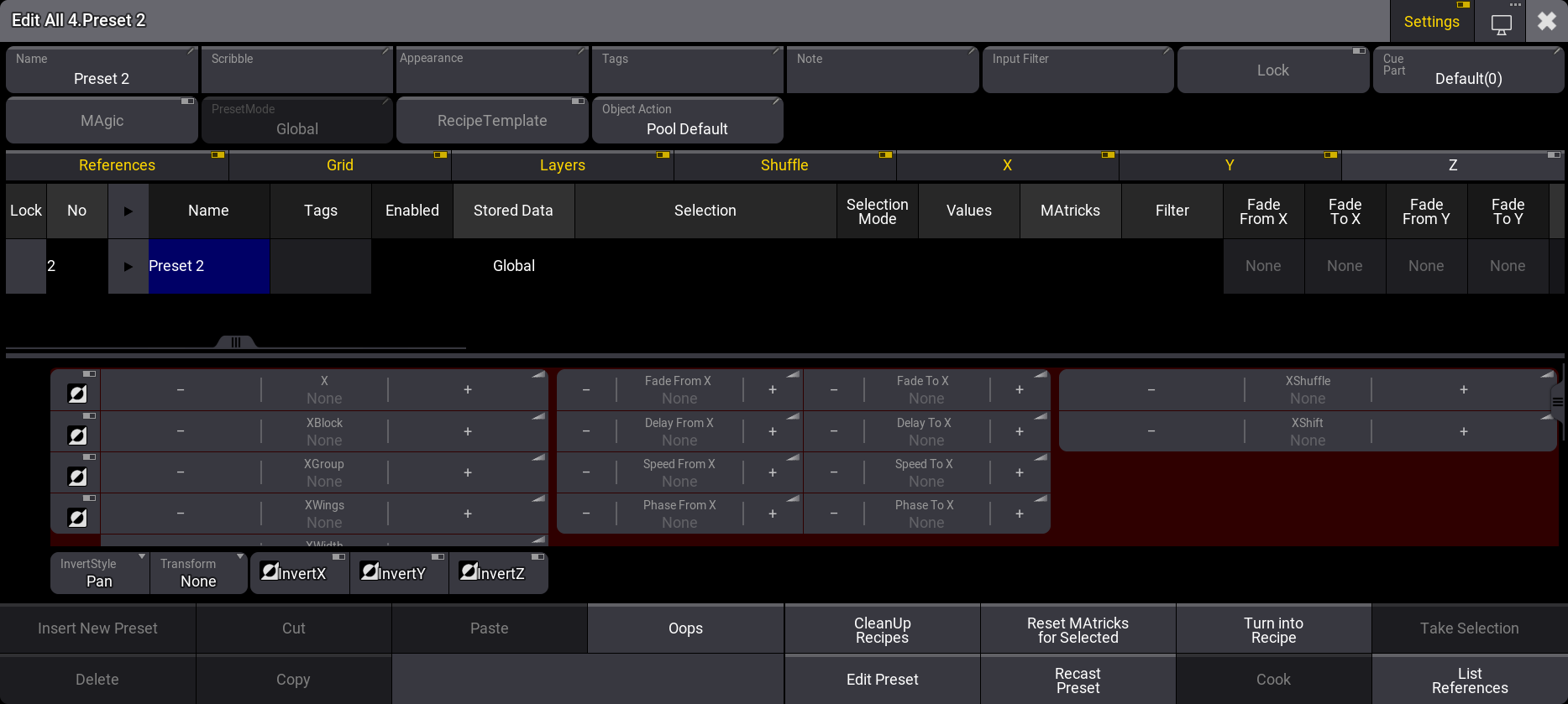 Recipe presets that reference the updated preset might need to be recooked to look as expected, and cues might need to be recooked for the expected result.