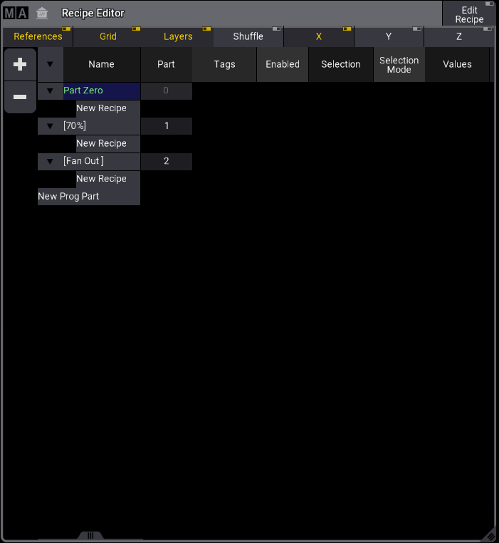 - A visible recipe editor.