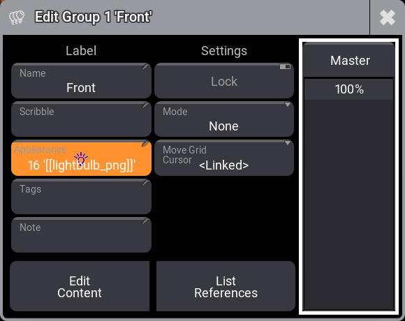Most objects in the grandMA3 have the option to add an appearance. The purpose is to customize the look of the objects. This can be used as indicators of different fixture types or special cues or to add symbols or images to elements for faster identification.