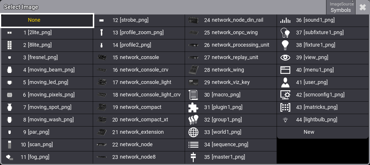 It defaults to using the "Images" pool as the source. This can be changed. Click the ImageSouce button until it says "Symbols" - and most likely becomes bigger.