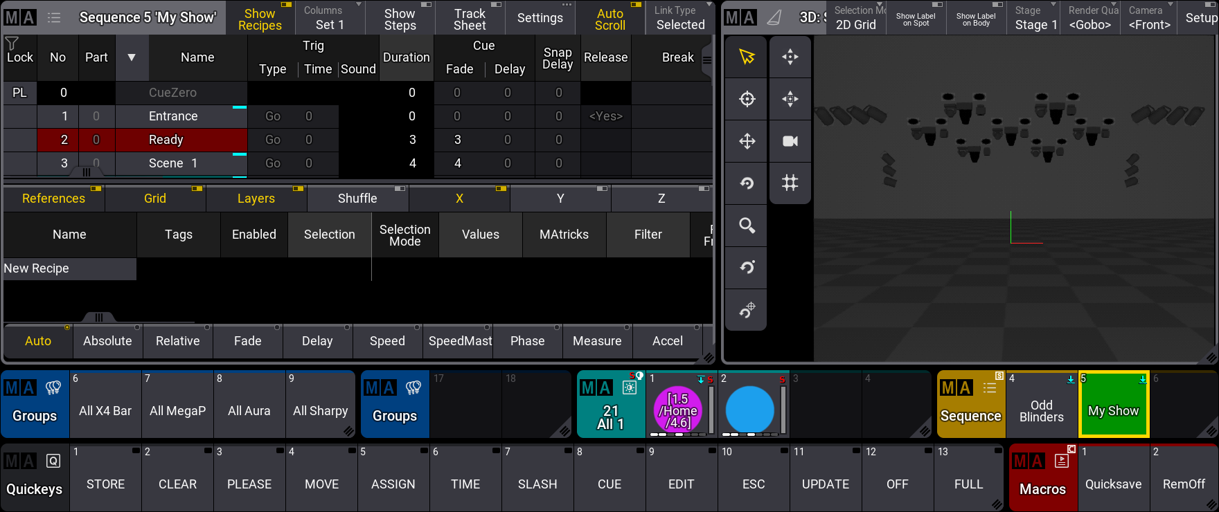 There are many more details to recipes, but the hope is that you can see some of the advantages of using recipes in a show where flexibility is needed.