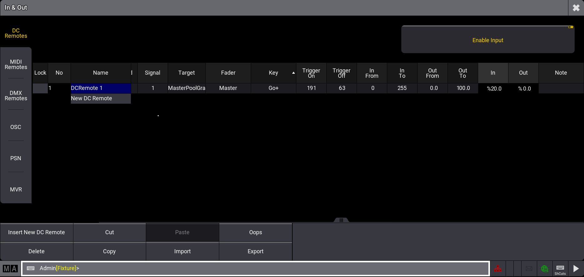 - Tap Insert new DCRemote. A new DC remote configuration line is added.