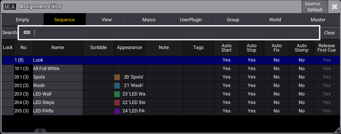 - Two finger-tap the corresponding configuration line in the Target column. The Assignment Editor opens.