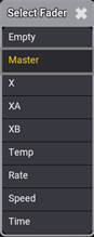 - To open the Select Fader pop-up, edit the empty Fader column. Set the Fader to Master as shown in the image below:
