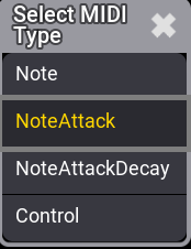 - To set the MIDI Type value to a new value, right-click or tap and hold MIDI Type. A pop-up opens: