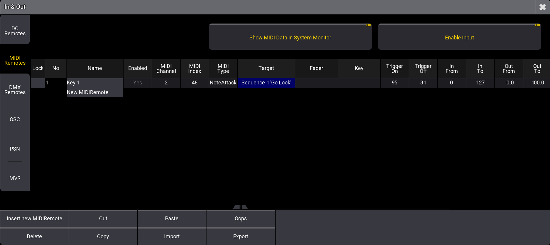 - Open Menu - In & Out - MIDI Remotes.