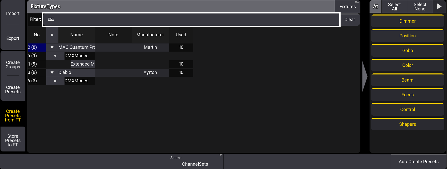 Create Presets from Fixture Type (FT)