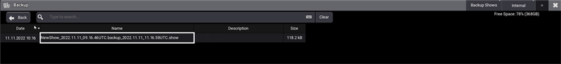 - You can store up to 10 backup files from the same show file. A backup is automatically generated when saving a show file.