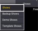 - Tap Shows to toggle between Shows, Backup Shows, Demo Shows and Template Shows.