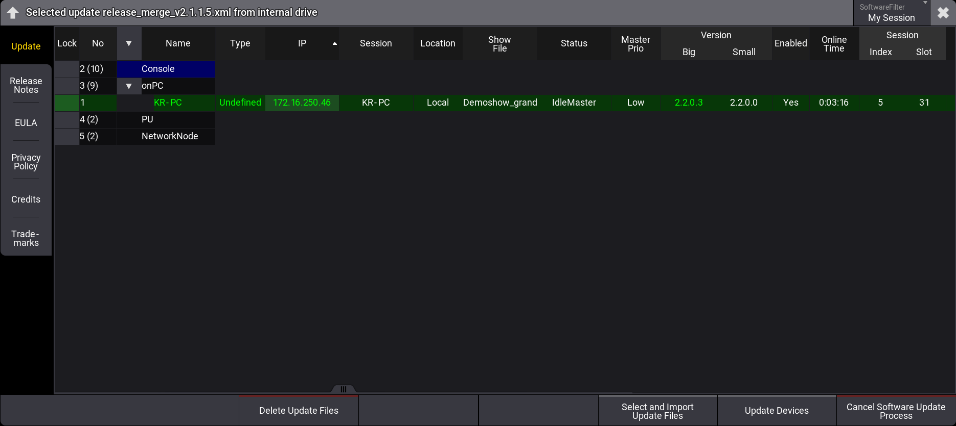 | It is also possible to update the grandMA3 onPC, consoles, xPort Nodes, onPC command wing XT, processing unit and onPC rack-unit directly. |