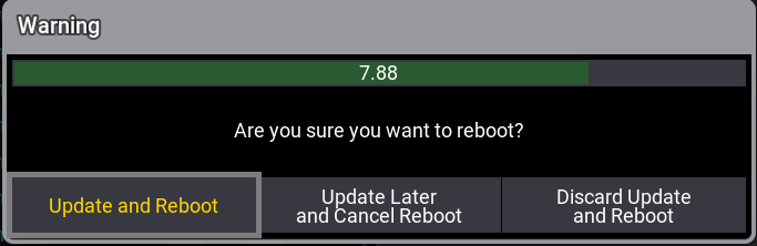 . - Discard Update and Reboot: Aborts the update and reboots the device.
