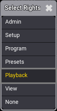 This level allows playback and running a programmed show. But the user cannot store anything. -