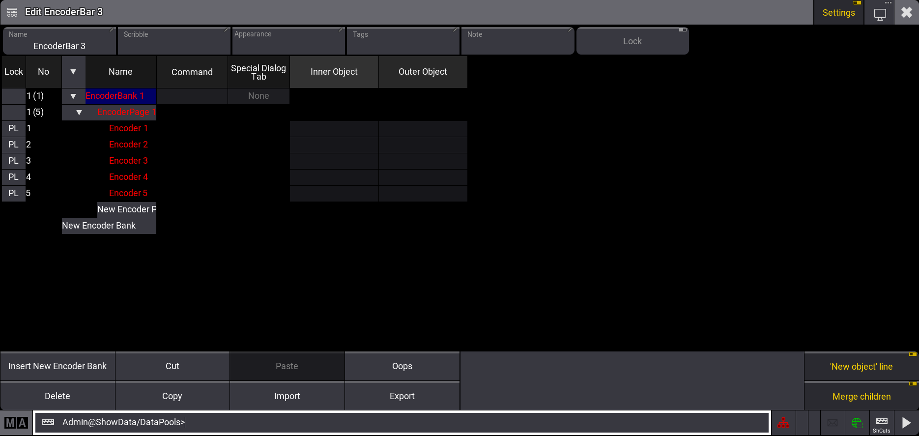 - Press Copy , tab Encoder BarPool Object 1 and then tap an empty encoder bar pool object in the Encoder Bars Pool.