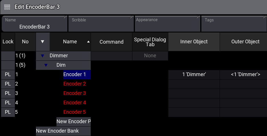 - Repeat steps 2-3 and rename EncoderPage 1, for example, to Dim. A new EncoderBank is created.