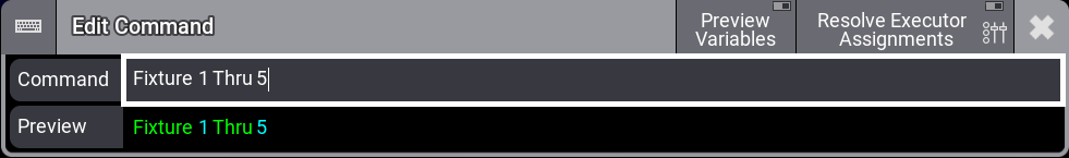 - Type a command, for example, Fixture 1 Thru 5 and then press Please.