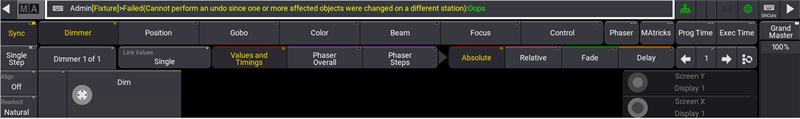 - Change at least two values in the show file to create Oops events, for example, by setting dimmer, position and color values for fixtures.