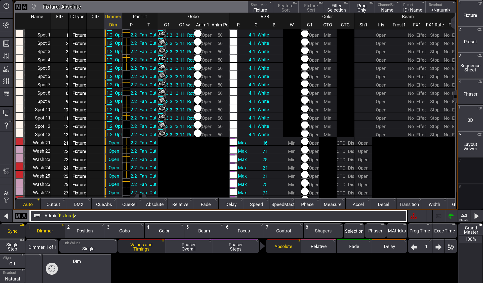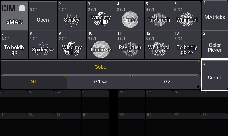 Screen 8, Screen 9, Screen 10, Screen 11, and Screen 12 are the letterbox screens, which are available on the grandMA3 full-size, light, and extension. The displays on these screens offer no user-defined area. The configurations of these displays cannot be changed. These screens are dedicated to specific display information and user input.