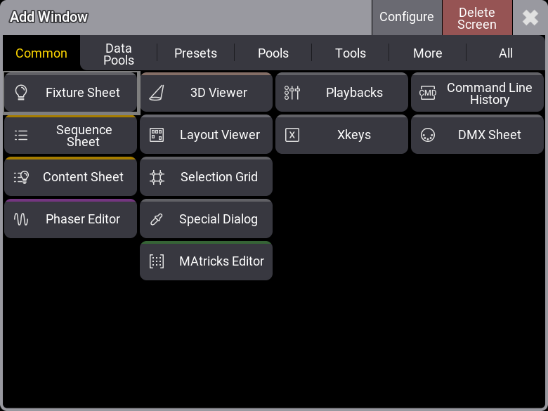 grandMA3 User Manual » Windows, Views, and Menus » Add Window
