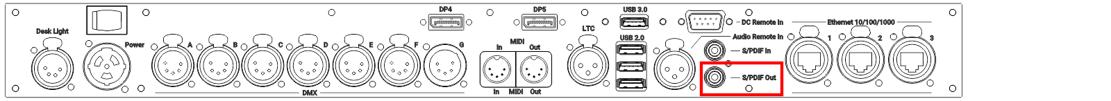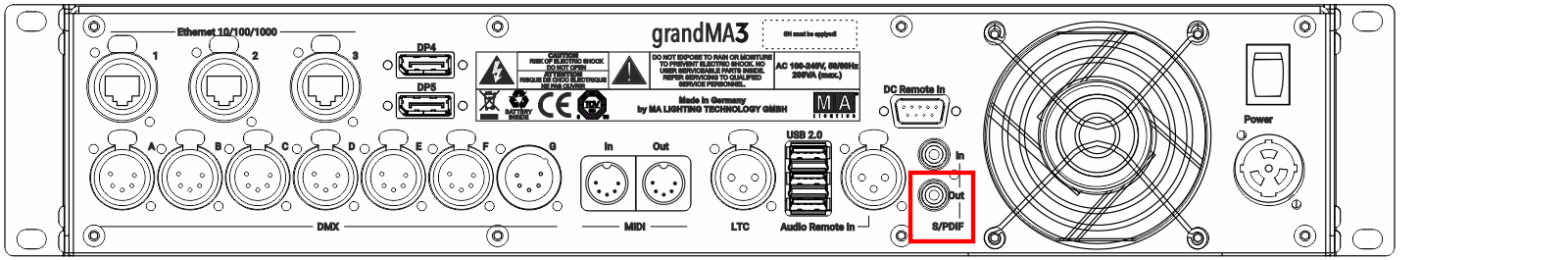 The following grandMA3 products have a S/PDIF (Sony/Philips Digital Interface) connectors on the rear panel to output sound. For more information on sounds, see the Sounds Pool topic.