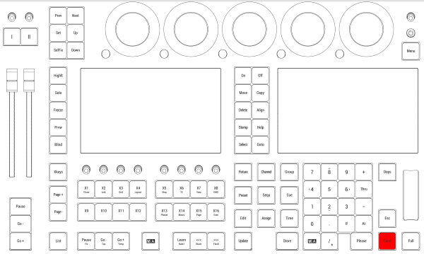 If there are no values in the programmer, pressing Clear deletes unexecuted commands in the command line and executes the ClearActive keyword