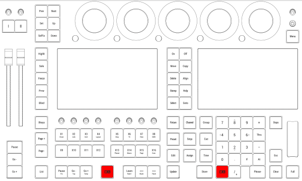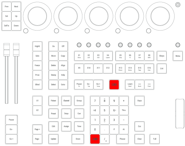 Pressing and holding MA in combination with other keys, provides shortcuts to other functions. There are two MA keys there – on both layouts of the console. They are identical and have the same function.