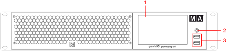 - Connect an external keyboard and mouse to the grandMA3 processing unit using the USB ports.