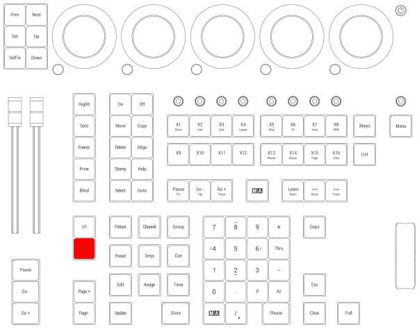 This key is only present on grandMA3 compact, grandMA3 compact XT, grandMA3 onPC command wing and grandMA3 onPC command wing XT.