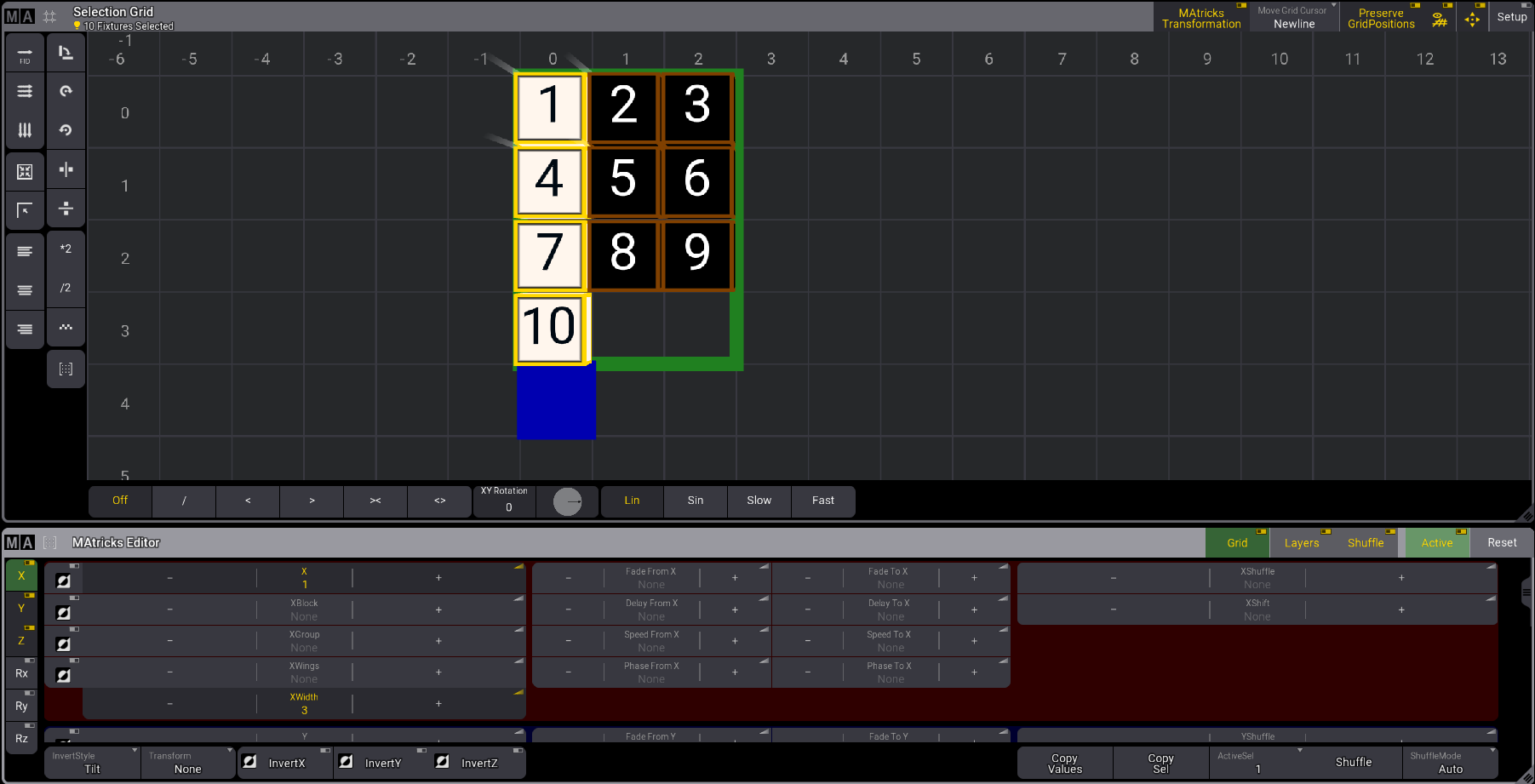 Ten fixtures with MAtricks X at 1 - XWidth at 3
