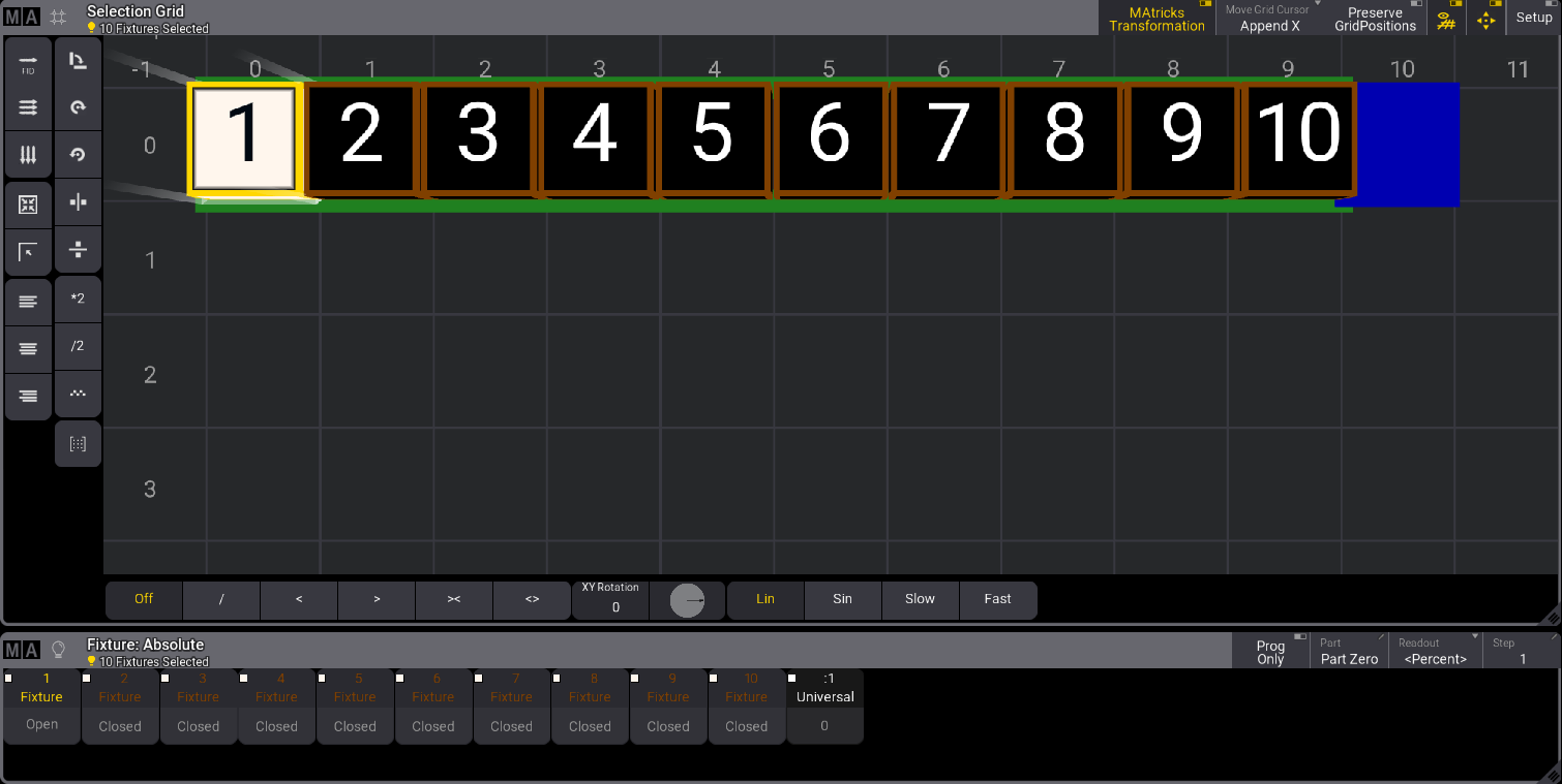 Example - Ten Fixtures One Axis