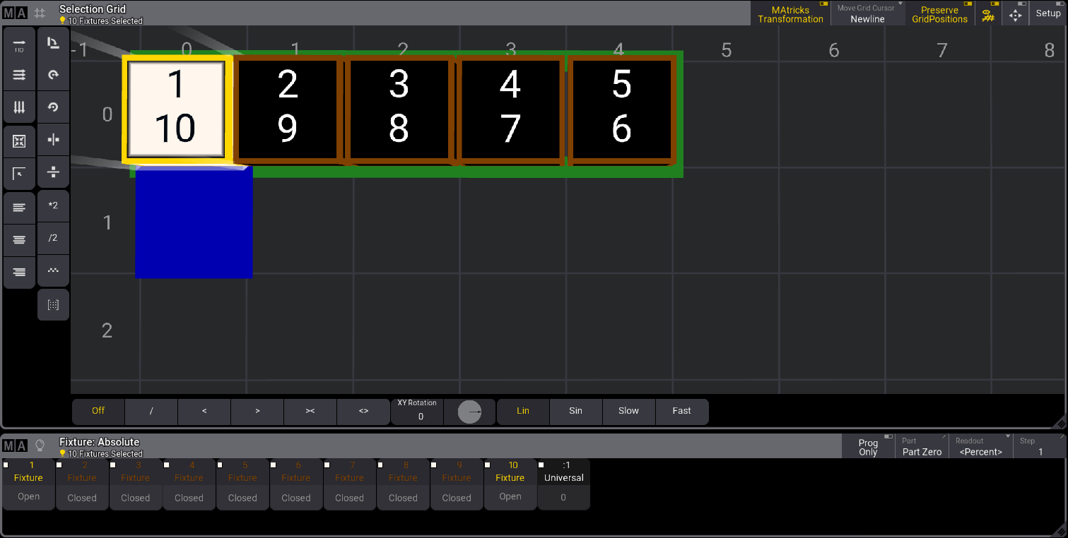 In this example, there are ten fixtures (1 through 10).