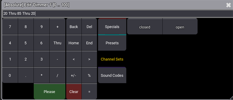 Tap the encoder belonging to the attribute that should be aligned, and the calculator opens. You can now enter the align values, as in the example below: