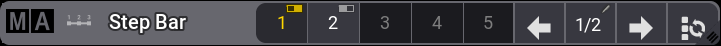 Additional controls appear on the right side of the Step Bar. These controls include left and right arrows used to change between single steps. An informative field appears between the arrows, showing which step is currently selected and the number of steps that contain values in the active phaser. If multiple steps are selected, the first selected step is shown with two dots after it (for example, 1../3). If all steps are selected, the first number is replaced with an asterisk (for example, */3).