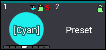 Presets are marked with a cyan marker. This maker is visible on cues that use preset and on the values themselves, for instance, in the tracking sheet or the fixture sheet. Read more in the Marker topic.
