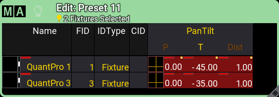 When editing a preset with global data, the fixtures with the global data in the programmer will display a yellow square marker in the top right corner of the attribute cell within the fixture sheet.